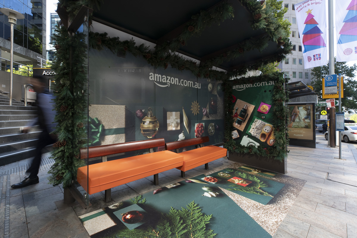 And to encourage audiences to jump online for Christmas gifts, our Creative Solutions team created six fabulously festive 3D bus shelter wraps featuring Christmas tree-inspired greenery, a gingerbread scent, and a roof filled with presents, including a llama–a key element from Amazon’s TVC. The activation also featured a push button that plays music.