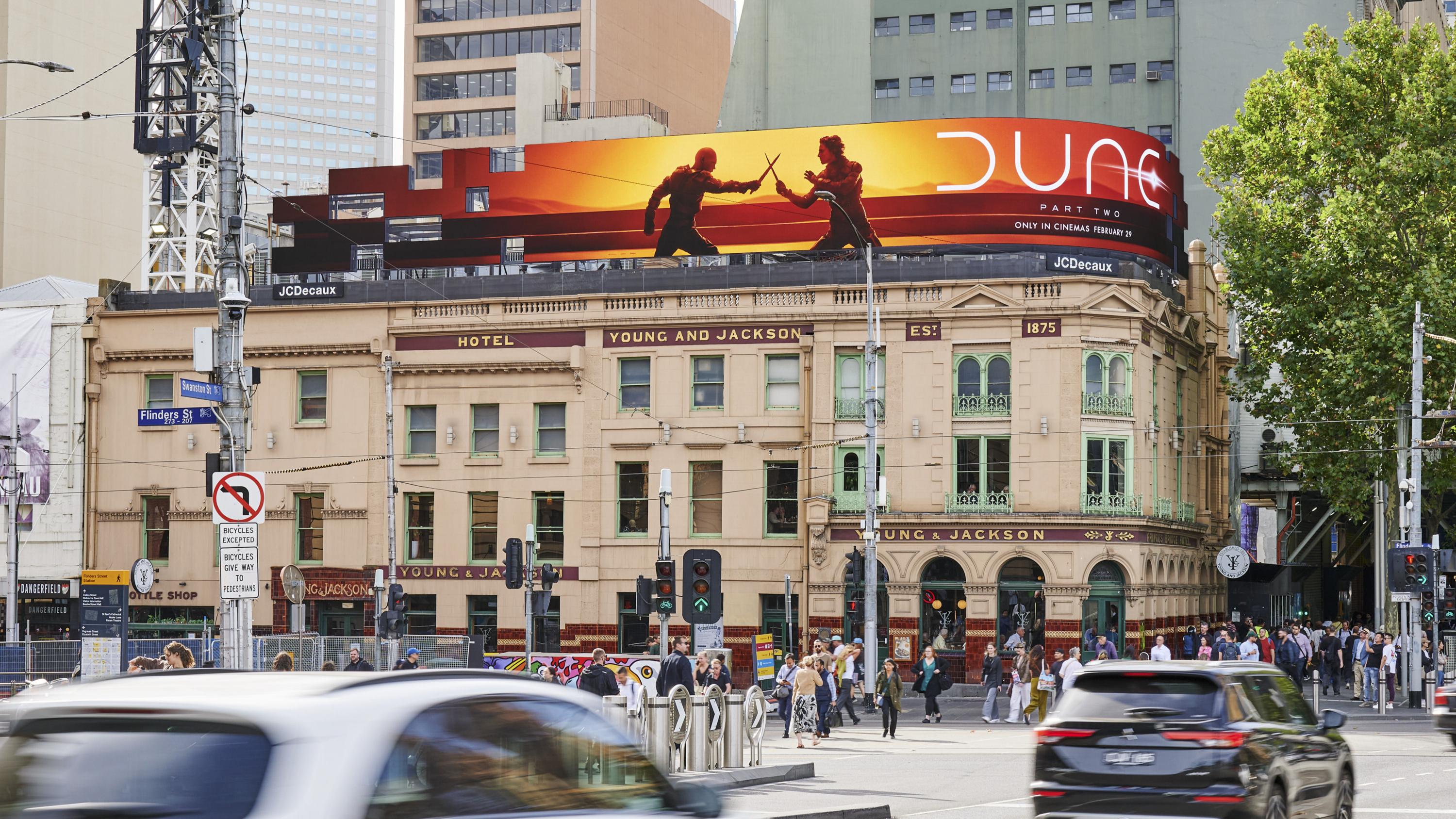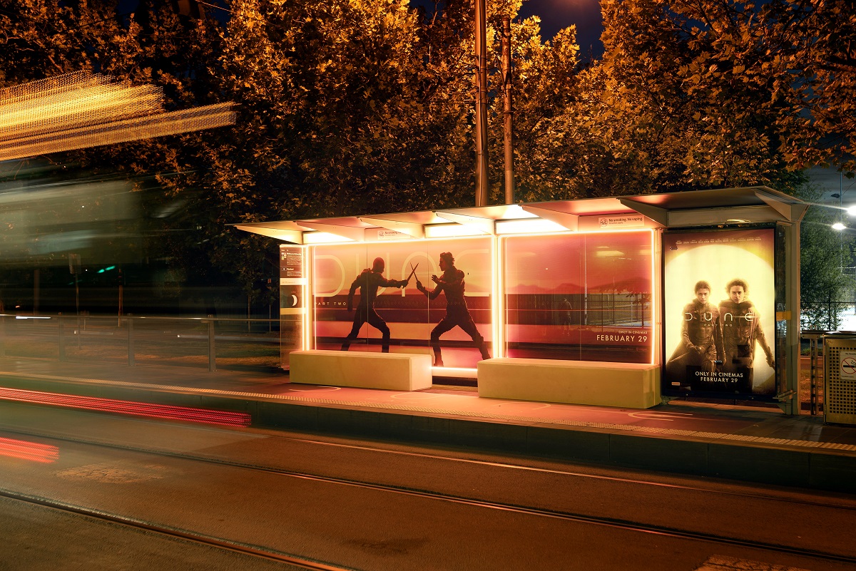 The brand transformed a tram shelter in the heart of Melbourne to feature custom sandy-seating and a motion-detector sound panel playing snippets of Hans Zimmer’s epic score, transporting commuters straight to Arrakis’s desert landscape.