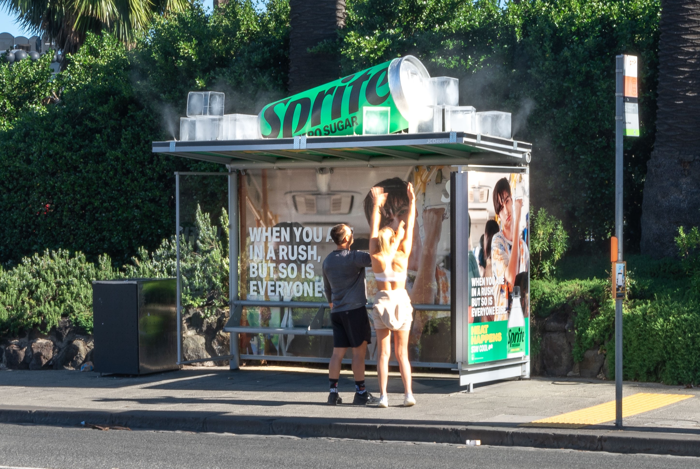 In this cool campaign, Coca-Cola and EssenceMediacom helped beach goers in Bondi and St Kilda stay cool. The eye-catching Sprite activation featured a larger than life roof build, a push-button for mist, and a wall wrap.