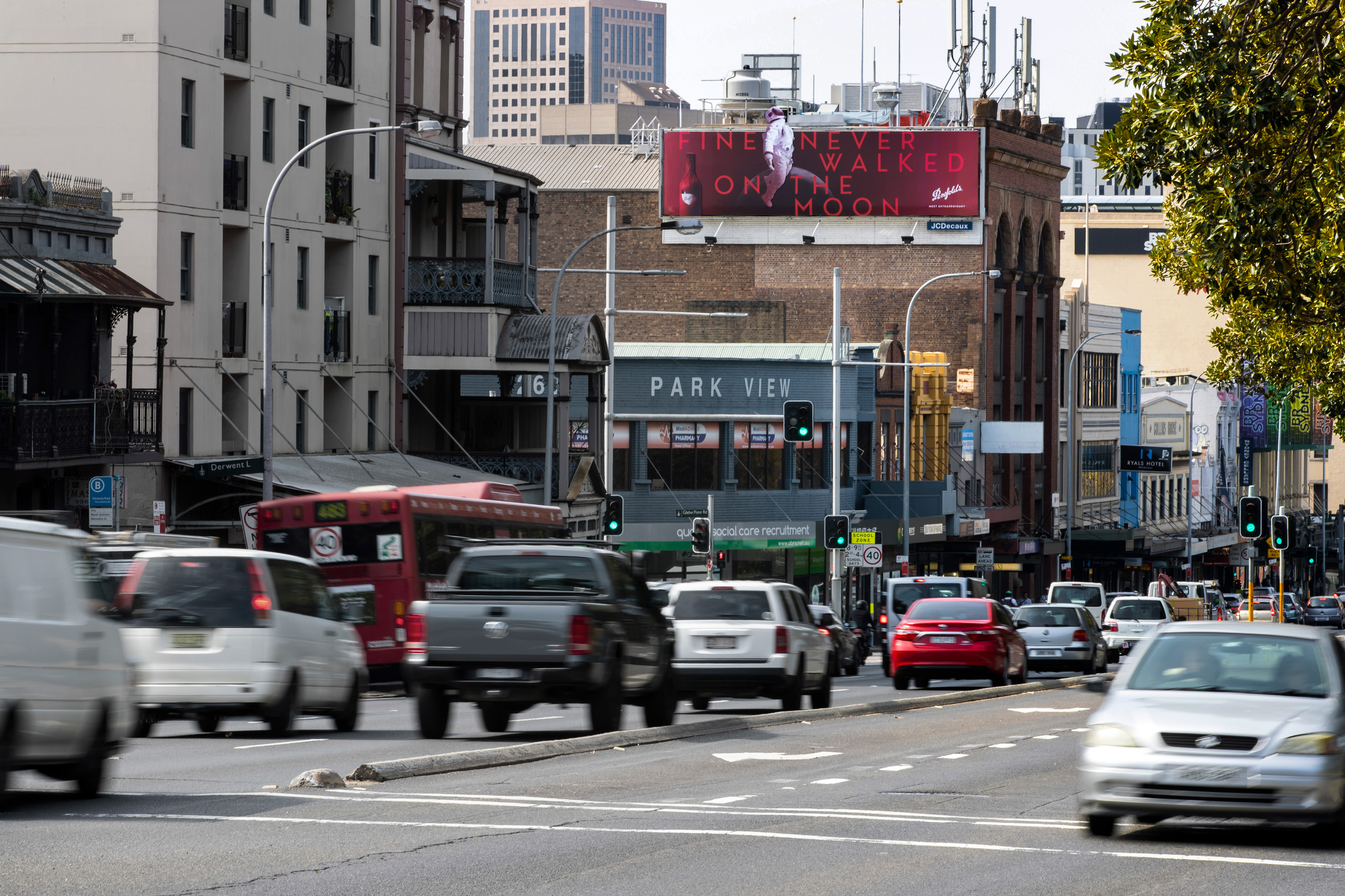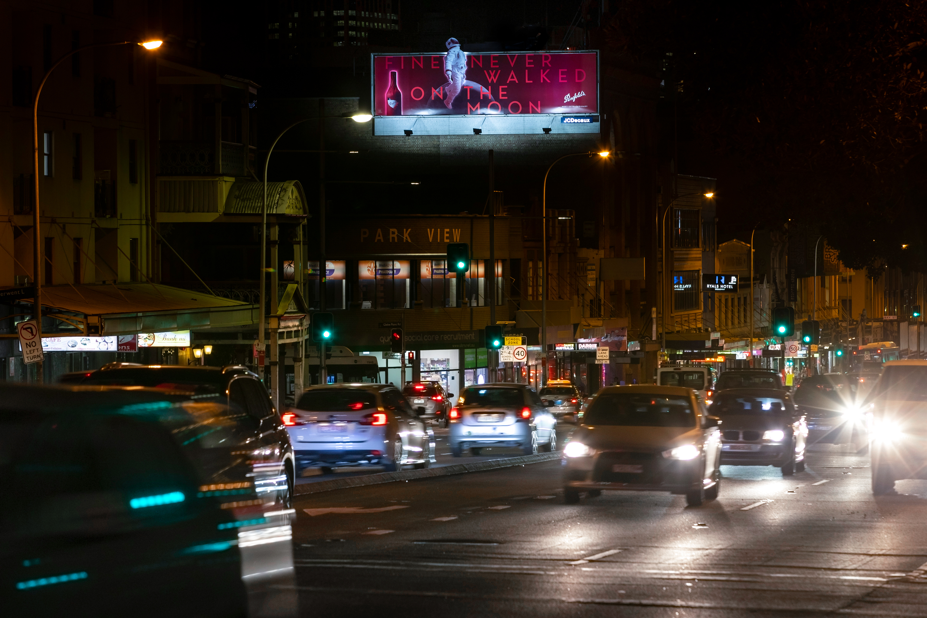 To launch their 2020 collection, Penfolds partnered with JCDecaux to include 2D extensions and lighting effects for their Large Format messaging, turning this inner suburban road into an imaginative dreamscape.