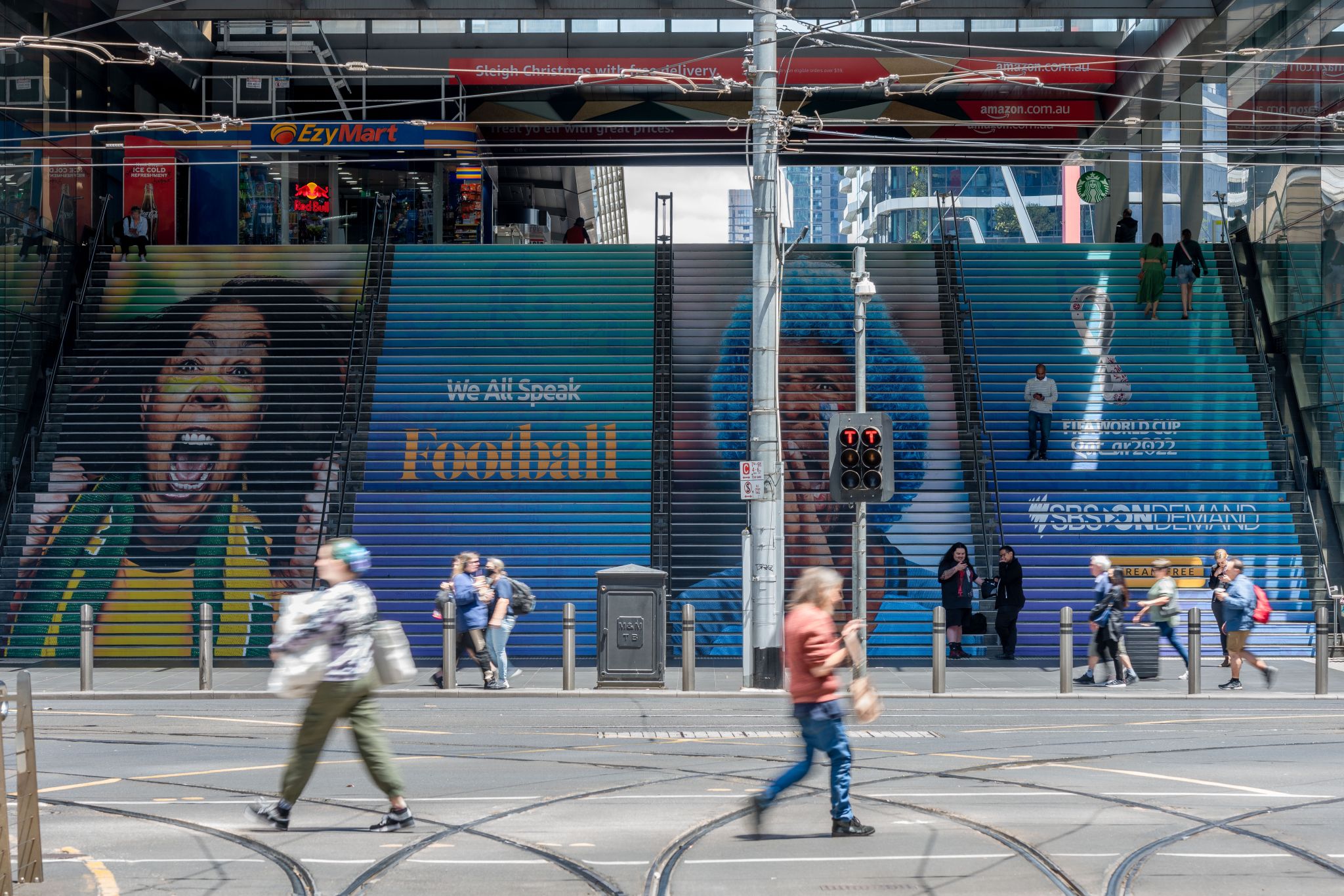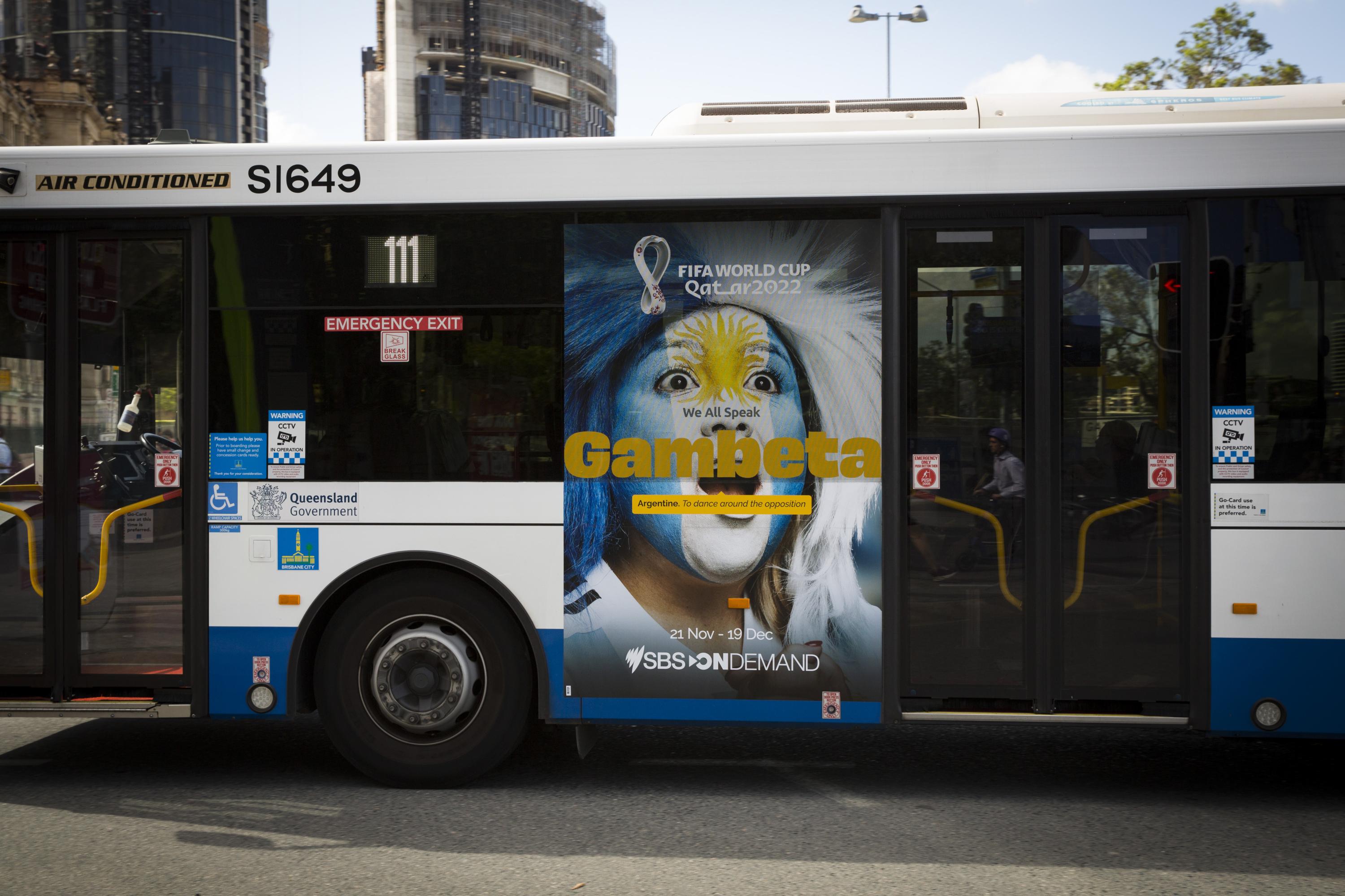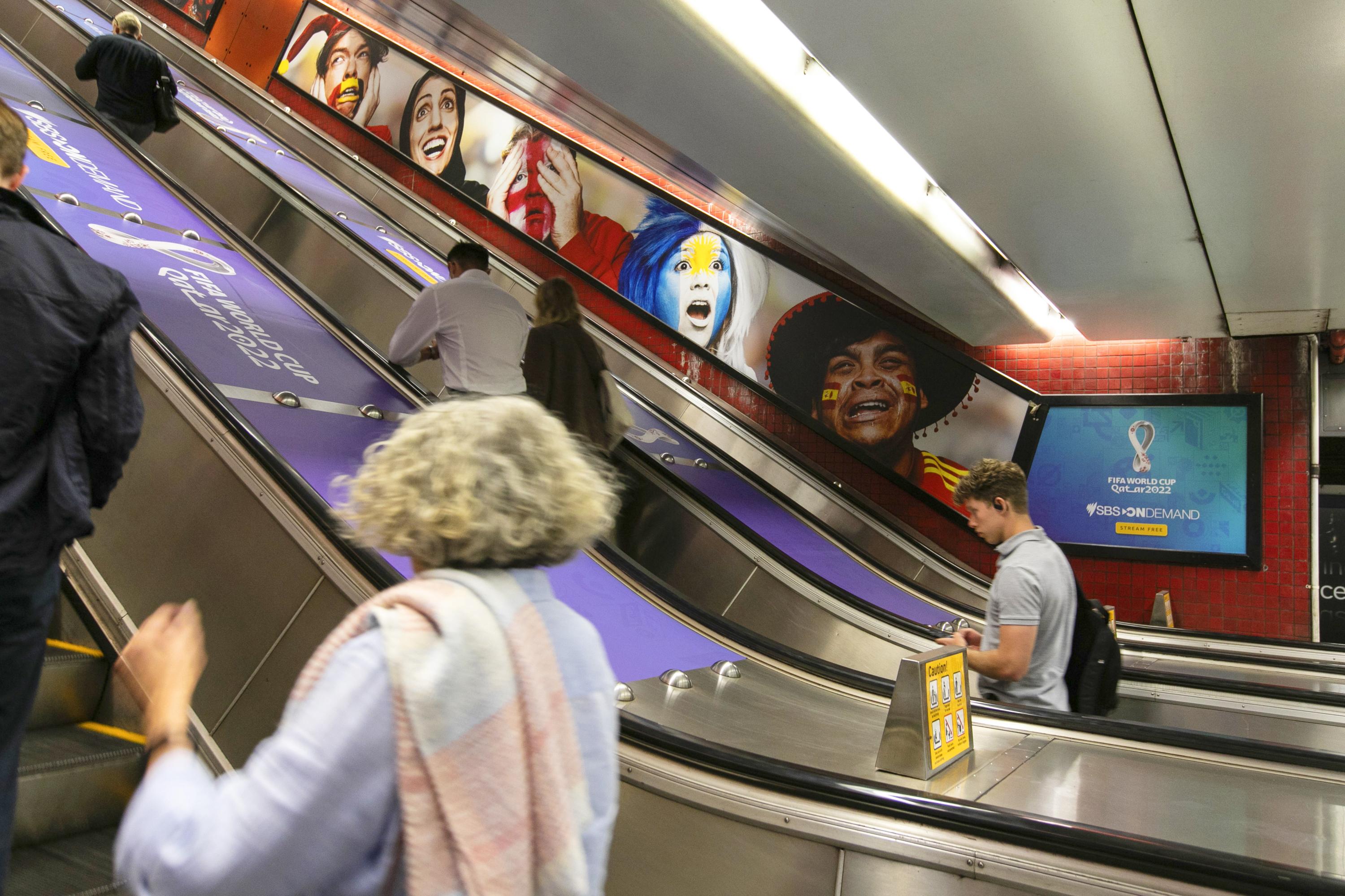 To drive mass awareness of SBS’ exclusive coverage of the FIFA World Cup in Qatar, the brand ran a national multi-format campaign.  Displayed in the lead up to and throughout the tournament, SBS utilised audience intelligence data to underpin site selection and included some of JCDecaux’s most iconic Out-of-Home placements such as Bourke St stairs at Southern Cross Station, the Martin Place escalators, and Sydney's B-Line buses.